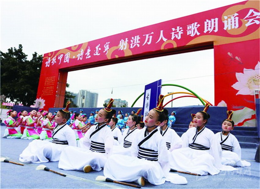 據(jù)了解,本次活動(dòng)是《詩刊》2016年度陳子昂詩歌獎(jiǎng)系列活動(dòng)之一,參與人數(shù)之多、規(guī)模之大,在射洪縣尚屬首次?,F(xiàn)場(chǎng)由射洪中小學(xué)生和企事業(yè)單位組成的方陣和演出隊(duì)伍,以載歌載舞或配樂詩朗誦等形式登臺(tái)表演, 內(nèi)容以經(jīng)典詩詞為主,也有圍繞當(dāng)前中心工作而創(chuàng)作的新詩。這是文化的傳承,更是血脈的延續(xù)。參加詩歌朗誦會(huì)的最小的4歲,或許他們不懂文字背后的美,并不理解字里行間透露出的人生況味,但他們?cè)谏浜檫@樣的文學(xué)滋 養(yǎng)中出生、成長。
