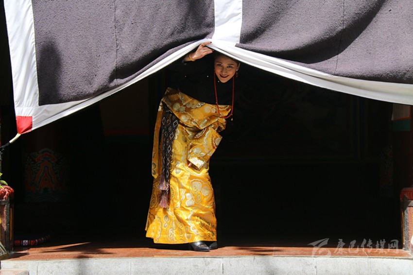 無論是經(jīng)典的黑色立領(lǐng)上衣還是金邊裝飾的翻領(lǐng)上衣,都十分時髦美觀,配上做工精細,由毛呢、氆氌等材料制成的充滿民族特色花紋的下衣,加上華麗珠寶鑲嵌的腰帶是對傳統(tǒng)藏裝的傳承與發(fā)展。