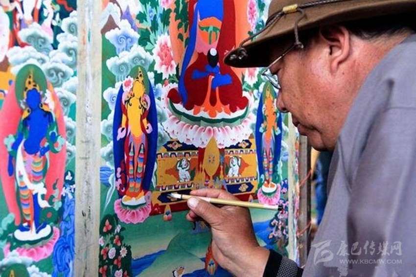 然而,在80年代的時(shí)候,爐霍郎卡杰唐卡曾一度面臨過失傳的危險(xiǎn)。爐霍縣唐卡協(xié)會(huì)會(huì)長擁忠洛吾告訴筆者,當(dāng)時(shí)畫唐卡都是家傳,爐霍縣上的畫師不超過10個(gè)人,這種古老的藝術(shù)如何得以傳承困擾著大家。2007年,當(dāng)?shù)卣闪⒘藸t霍縣唐卡繪畫藝術(shù)協(xié)會(huì),進(jìn)行唐卡繪畫人才培養(yǎng)和市場化運(yùn)作。協(xié)會(huì)還辦學(xué),免費(fèi)培育年輕學(xué)生。目前,協(xié)會(huì)有郎卡杰唐卡老師7名。今年,來學(xué)習(xí)的年輕學(xué)生有20多個(gè),平均年齡在18歲左右。