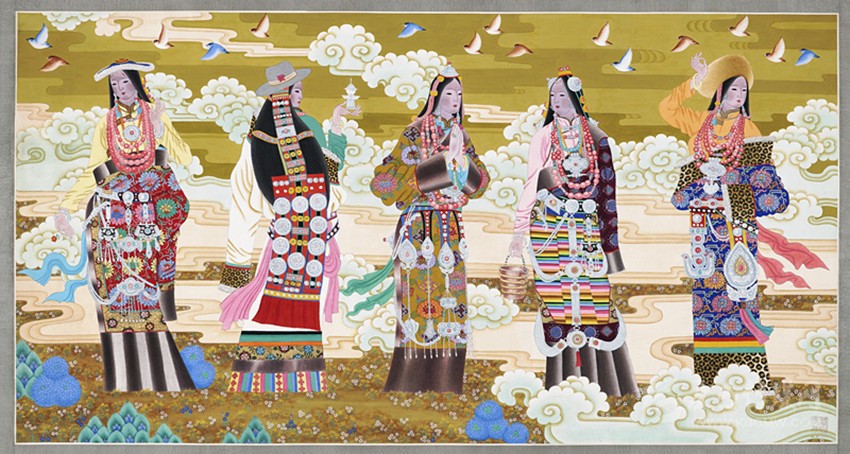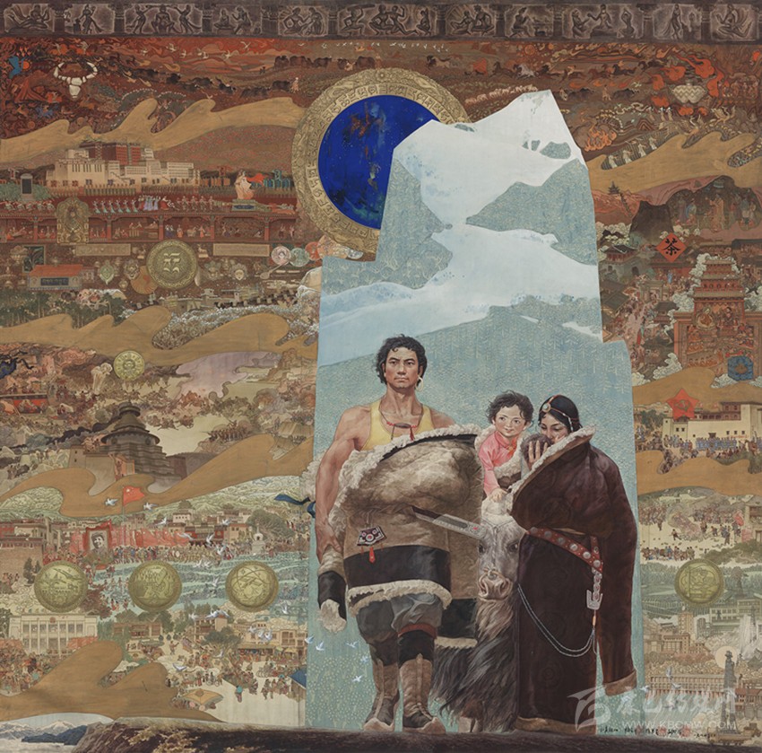 青藏高原有著曠遠弘大的人文地理,有著神秘久遠的宗教文化傳承,正是這蒼茫大地孕育了藏族人;正是這片極度追求審美體驗并把生活高度藝術(shù)化的疆域,滋養(yǎng)了西藏藝術(shù)。從早期的巖畫、旗幡畫、唐卡、壁畫,再到當(dāng)代的丹青重彩,無不生發(fā)于這片神奇高原,皆是中華民族文化寶庫中燦爛的牟尼寶珠。唐卡繪畫肇啟于松贊干布隆興之時,向南學(xué)習(xí)印度、尼泊爾布畫,往西受到犍陀羅藝術(shù)浸潤,向東融合唐、宋、明、清之審美,再集藏地宗教文化、民族審美熔為一爐,鑄就一千三百年唐卡繪畫之法脈。它不僅是獨具魅力的藏文化之血脈源流,更是各民族文化交融、和諧互生的典范,對世界藝術(shù)有著深遠的影響。