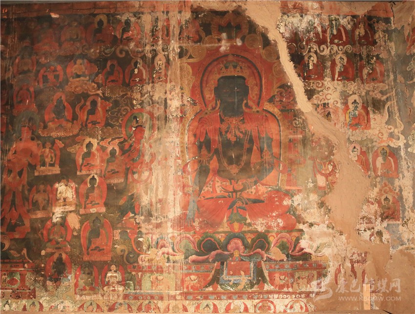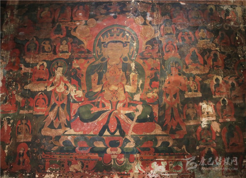 而吉祥天母殿內(nèi)的壁畫雖規(guī)模不及百柱大殿的壁畫大,但殿內(nèi)保存的壁畫歷史更悠久,畫風(fēng)更獨特,是一座取之不盡用之不竭的壁畫寶庫,是目前當(dāng)?shù)乇4娴谋诋嫯?dāng)中規(guī)模最大最古老的壁畫之一。