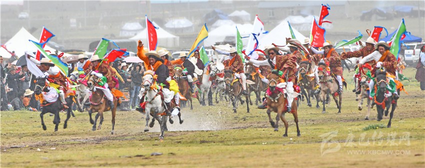 “神駿飛蹄沖云霄,箭過耳畔風(fēng)蕭蕭。眨眼已達(dá)終點線,歡呼聲起似驚濤?!薄@是今年理塘賽馬會現(xiàn)場最貼切的寫照。8月3日上午,在“馬術(shù)之鄉(xiāng)”的理塘縣八一賽馬場,禮炮聲響還未散盡,來自曲登鄉(xiāng)、高城鎮(zhèn)、格木鄉(xiāng)、奔戈鄉(xiāng)、禾尼鄉(xiāng)及村戈鄉(xiāng)共計1000名草原騎手齊登場,他們忽而馬背倒立,忽而藏身馬肚,忽而俯身拾哈達(dá),忽而飛槍射擊,繪出一幅壯闊人心的畫面。