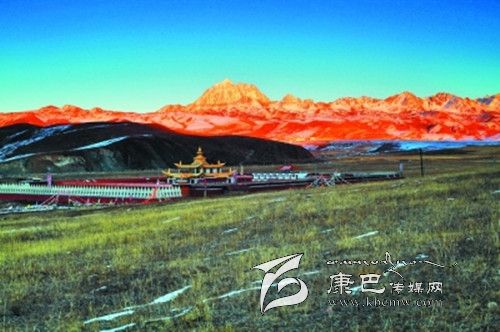 冬日的塔公草原。夕陽下,一個(gè)人緩步行在高低起伏、荒去了的草地。