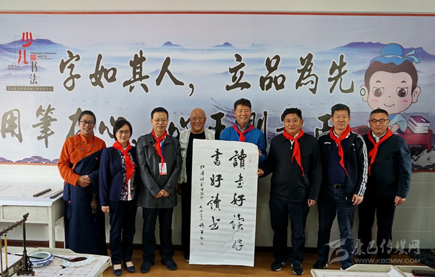 看著“戴上紅領(lǐng)巾,仿佛又童心”的一位位同伴和“求知若渴,流露期盼”的一個(gè)個(gè)孩子,老先生當(dāng)場奮筆疾書,寫下“讀書好、讀好書、好讀書”及“溜溜校園”兩幅字,希望藉此勉勵(lì)甘孜州青少年學(xué)子養(yǎng)成良好的閱讀書寫習(xí)慣,從精品閱讀和書法作品中攫取優(yōu)秀的文化果實(shí),讓濃郁的書香、墨香充盈四川藏區(qū)校園的每一個(gè)角落。