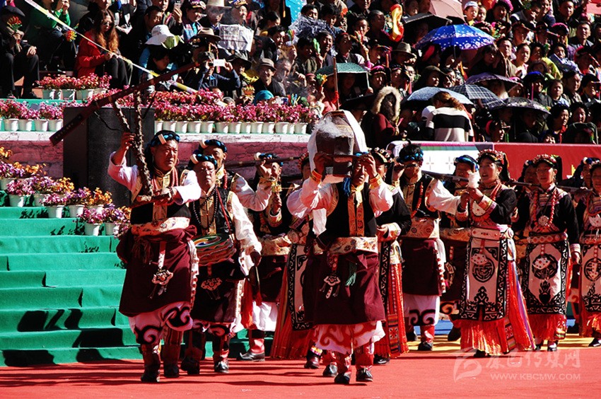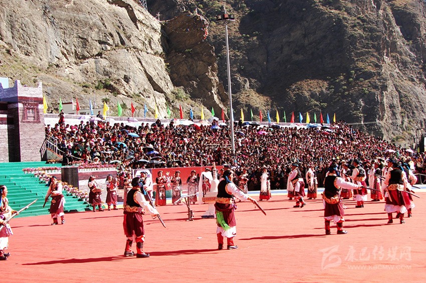 槍舞,嘉絨語中稱為“訥沖呷兒”,主要是在祭祀、集會(huì)、節(jié)日時(shí)表演的一種近似于戰(zhàn)術(shù)的舞蹈。在舞蹈中,舞者圍成一個(gè)圓圈,手持明火槍,明火槍,是最早的一種真正適于在戰(zhàn)場上為軍事目的使用的火槍。槍膛為一根圓柱形的鐵筒,筒口直徑為三厘米左右,在槍膛底部,有一個(gè)小圓孔伸出槍管,為導(dǎo)火管。如耳朵狀,因此也稱為槍耳,主要是用來點(diǎn)火的地方。圓筒固定在堅(jiān)硬的木托頂端。這種輕火器或者說小型火炮使用的是形狀不規(guī)則的彈丸,即不大的實(shí)心彈,它緊貼大?;鹚幹瞥傻难b藥,借緊挨導(dǎo)火孔的火繩發(fā)射。