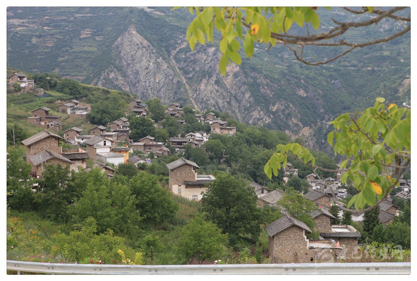 至此,似乎明了:在大渡河的東岸,在南北向布列的橫斷山脈(群)的夾金山系里,照常分布著眾多山的凹槽(山溝)——或深或淺,或?qū)捇蛘较虿欢?;而麥崩鄉(xiāng)所轄的村莊,幾乎都位于山溝兩側(cè)比較平緩的山坡臺地上。比如,昌昌村與對面山上的景點(diǎn)之間,就隔著一條大溝;昌昌村與下火地村之間,也隔著一條大溝;下火地村與景點(diǎn)所在的那座山,也隔著一條大溝了。