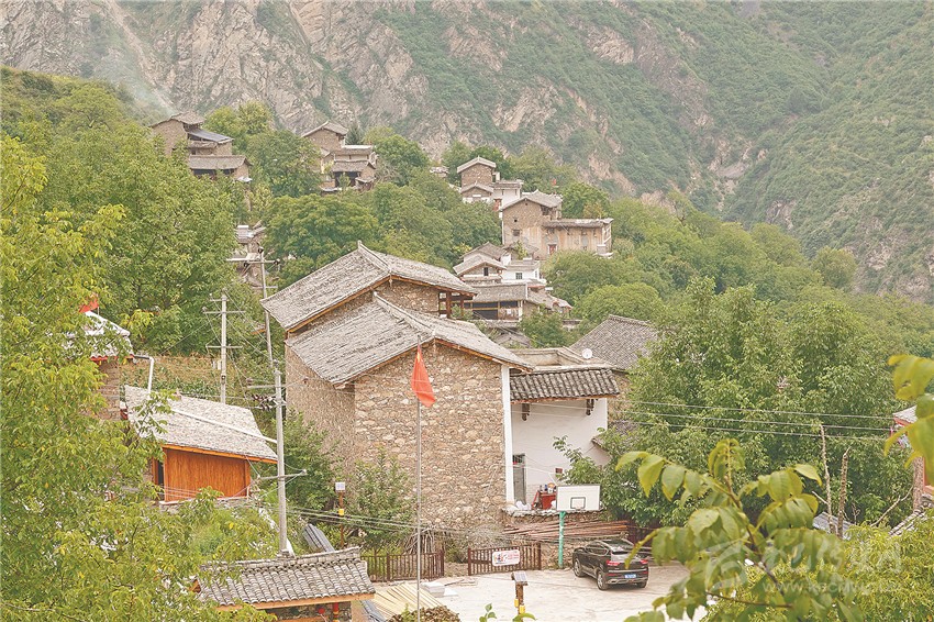 但那時(shí)如細(xì)索一樣盤繞在陡峻坡崖間的山路牢牢地拴住了山民的腳。多少年過去了,老樹尚在,世事卻變化得讓人難以置信。眼下的貢安山梁上正在建造一座數(shù)層高的觀景高樓,這極可能成為麥崩山鄉(xiāng)新的“地標(biāo)”。尚未峻工的觀景樓臺(tái)右側(cè),沿起伏的山梁已修筑兩公里長(zhǎng)的步游廊道,野花簇?fù)?,起伏如龍。山堡里民居接待、亭院廊樓、果樹花臺(tái)夾雜于坡地綠叢間,時(shí)不時(shí)有外地旅游觀光小車沿新筑的水泥公路駛?cè)肷奖?,已具現(xiàn)代旅游商業(yè)化的規(guī)模。