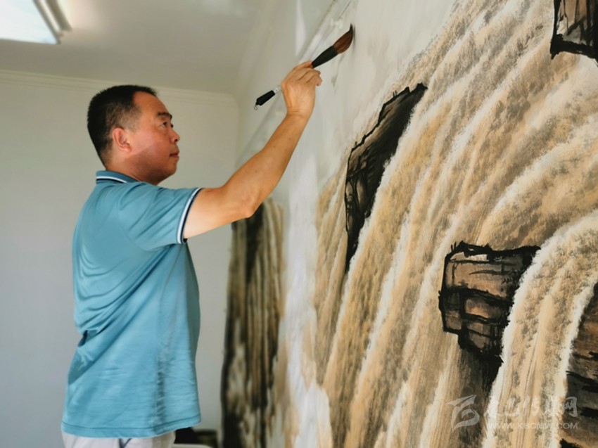 裴洪波作畫中。