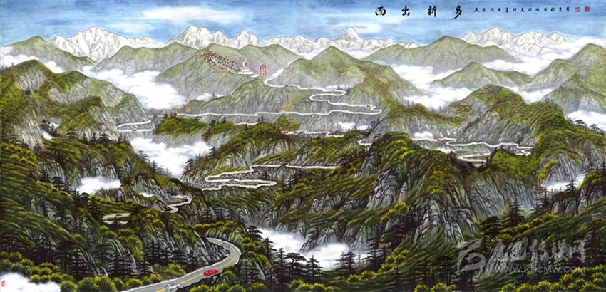 一路走來,雖將多數精力傾注于作畫,裴宏波卻始終沒忘自己是康定人,只要有機會,他就用“本領功”表達自己的家鄉(xiāng)情,“康定新八景”算是他對家鄉(xiāng)情的又一次詮釋。