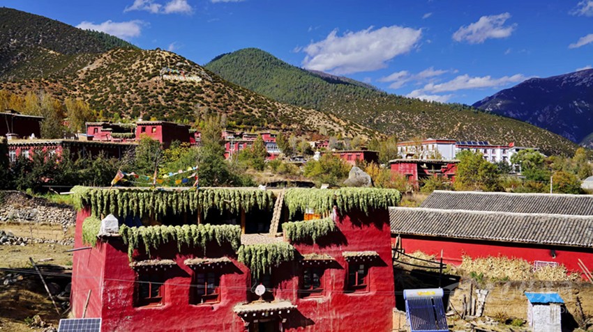 當(dāng)下的巴塘,修建傳統(tǒng)紅藏房的人家已經(jīng)很少,大家都圖簡便將工程外包。房屋藏漢結(jié)合,使用鋼筋、混凝土等材料,只將外觀做成傳統(tǒng)樣式。但紅藏房始終是巴塘民居的特色,遠(yuǎn)眺巴塘的扎金頂、架炮頂村,成片的紅藏房掩映在綠樹紅花間,是游子們永遠(yuǎn)的鄉(xiāng)愁,更是每個巴塘人心中溫暖的光芒。有一段時間,有些人家根據(jù)自己的喜好,摒棄了傳統(tǒng),房屋顏色不統(tǒng)一,好在政府開展了土地整治工作,市鎮(zhèn)建設(shè)按城區(qū)、鄉(xiāng)鎮(zhèn)統(tǒng)一了顏色。