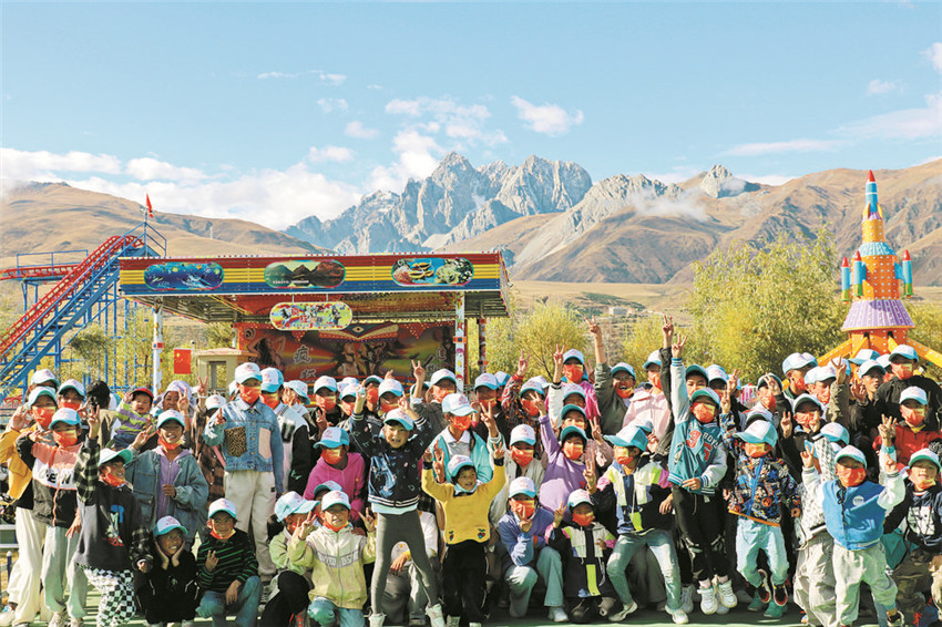 第二天逢殊勝日,村里的人們放下手中的活兒,集聚在一起,一整天都在念誦經(jīng)文。孩子們三五成群地來到念經(jīng)場湊熱鬧。午休時分,有炊事者煮來酥油茶和麥粥等食物,供念經(jīng)的人們食用。