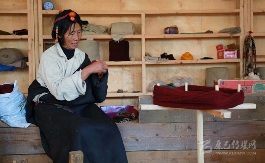“庫”,這層細軟的底絨被表層粗糙的牦牛毛所覆蓋,且本身細長彎曲,無法用剪刀方便地剪下,故而只能手工采集。從每年春天采集牦牛、羊絨,到捻成線,到染成不同顏色,再到織成一匹布,整個過程全由扎西巴姆和她帶領的幾個藏族婦女手工完成,全部學會這門技術需要3—4年,現在麥宿只有4人全部掌握。但與這費力耗時的工藝形成殘酷對照的是,手工織物在機器快速生產的現代社會,市場經營可謂舉步維艱。雖然工巧明系創(chuàng)立的平臺專門收購編織班做出來的產品,但購買的人并不多,編織班創(chuàng)建至今,所得收益只夠勉強維持平衡。