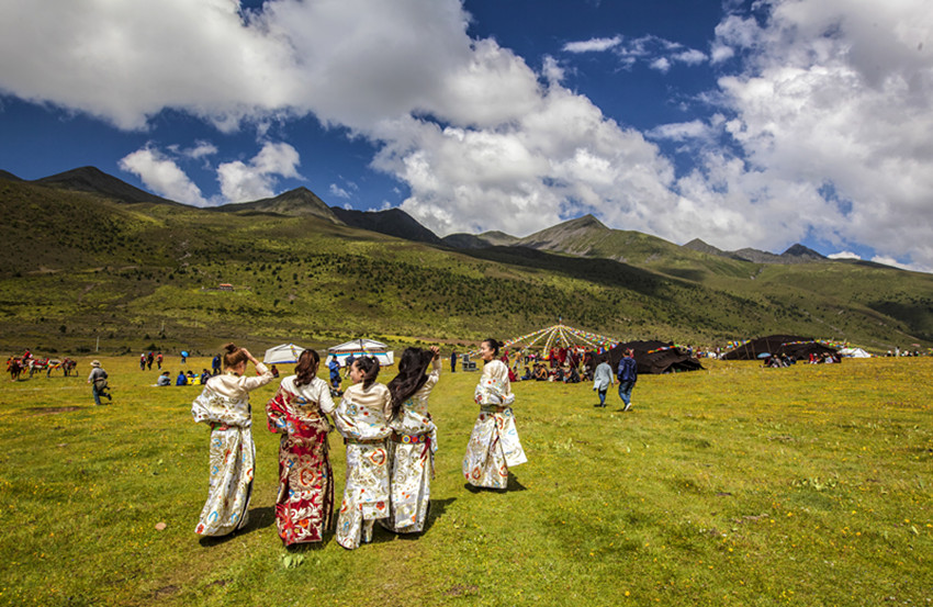木雅民族的鍋莊跳起來了,穩(wěn)沉而有力,多情而悠長,在雪峰環(huán)繞的庇護下,“木雅辛康”(意為天堂般的木雅地方)歡樂的歌聲盈滿了整個山谷。
