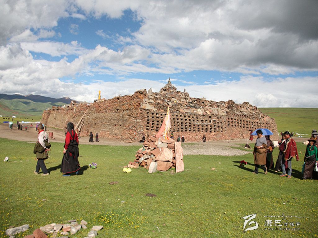 吃完午飯后,大家便走向松格瑪尼石經(jīng)城。短暫的煨桑儀式結(jié)束后,一匹匹高頭大馬繞著石經(jīng)城飛跑,隆達(dá)撒向半空,飄散在雨后的草原上。隨后,專家們走進石經(jīng)城,挨個頂禮了一處石刻造像,據(jù)說,這一處石刻造像具有加持力,十分靈驗??脊艑<覀兒陀浾呃@松格瑪尼石經(jīng)城走完一圈后,便離開,前往須巴神山。