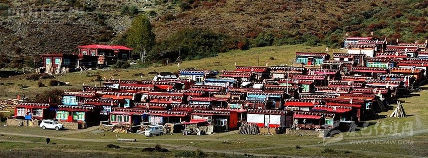 藏式房多平頂,可以說是環(huán)境的產(chǎn)物。高原干旱少雨,無須飛檐高頂,冬有積雪,便于打掃;最重要的是風(fēng)沙大而頻繁,高屋難耐勁風(fēng)。此外,平頂民房還有一個精神功能就是作為信仰的場所。房頂供奉有神靈的祭壇,有煨桑的香爐,更有家家必插的五色經(jīng)幡,有的房頂平臺的圖符裝飾極為精美,把最古老的建筑樣式和最現(xiàn)代的建筑格調(diào)融為一體。另一個共同特點便是,一般講究一些的農(nóng)村都把房子的夯土外壁刷成暗含深意的純白。這自然是典型的藏式院落了。而不太講究的半農(nóng)半牧區(qū)則保持原色。白色房屋上部突出棕色材料的房檐,或漆成棕紅的裝飾帶,既勾勒出輪廓,又平添了幾多美觀。白色建筑在藏語中有個非常詩意的名字,叫“點點繁星”。