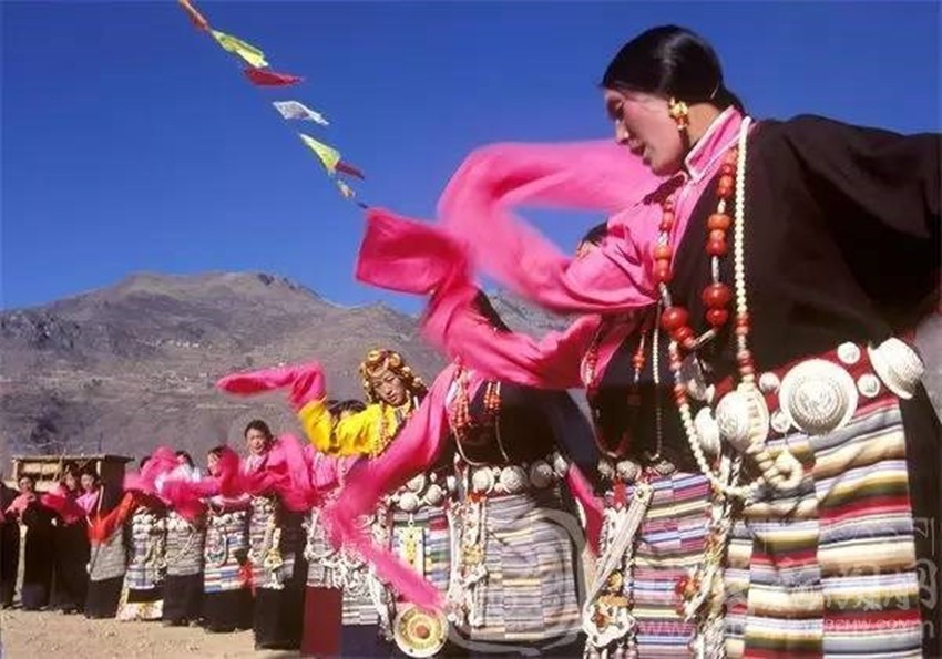 新龍鍋莊享譽(yù)藏區(qū),被譽(yù)為中國鍋莊之鄉(xiāng)。新龍鍋莊獨(dú)樹一幟,風(fēng)格與其他藏區(qū)的鍋莊迥異。新龍鍋莊據(jù)說是在格薩爾時(shí)代,有一位會(huì)唱山歌的商人,名叫阿俄絨布,他游走經(jīng)商各地。每到一個(gè)地方,阿俄絨布總是一邊經(jīng)商,一邊唱著山歌。他來到新龍以后,就獨(dú)創(chuàng)了一種舞蹈,并傳授給當(dāng)?shù)厝耍@種舞蹈很快在新龍地區(qū)流行起來。由于新龍與世隔絕,這種舞蹈沒有外傳,發(fā)展成為現(xiàn)在的“新龍鍋莊”。