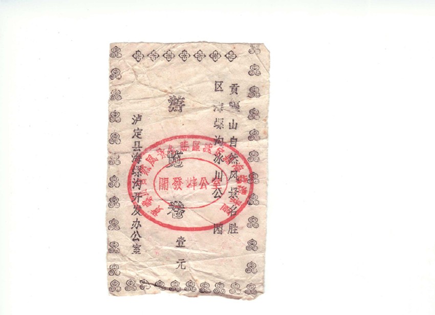 我有心收藏海螺溝旅游開(kāi)發(fā)建設(shè)三十年來(lái)不同時(shí)期、品相各異的門(mén)卷、門(mén)票數(shù)枚。門(mén)卷、門(mén)票是游客進(jìn)入景區(qū)的憑證,也是景區(qū)的“臉面”。在我收藏的門(mén)卷、門(mén)票中有一枚海螺溝景區(qū)第一代門(mén)卷。構(gòu)圖簡(jiǎn)單,白底黑字的第一代門(mén)卷,雖然在歲月中褪去了鮮色,但在方寸之間卻承載著海螺溝景區(qū)建設(shè)最初的時(shí)光和開(kāi)發(fā)建設(shè)者的記憶,更是瀘定縣三十年前發(fā)展旅游的歷史見(jiàn)證。一晃三十年光陰,至今我對(duì)海螺溝景區(qū)第一代門(mén)卷的來(lái)歷,還記憶猶新。