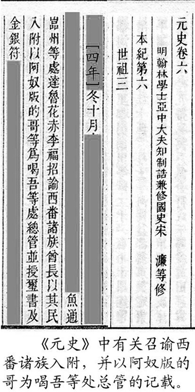 今屬康定縣的木雅,又分為上木雅和下木雅。下木雅的色烏絨地方,是木雅王曾住過(guò)的地方之一。民間又稱住在這里的王為“西吳甲布”(即“西吳王”),進(jìn)而又附會(huì)出個(gè)“西吳國(guó)”來(lái)。從木雅貢嘎西邊那條叫色烏絨的山溝往南到打箭爐,正如傳說(shuō)的那樣,早年一般要走三天?!对贰酚小昂任帷钡挠涊d,“喝吾”“色烏”都是藏語(yǔ)的音譯,藏語(yǔ)“絨”為山溝之意,指的就是這個(gè)色烏絨。元世祖忽必烈征滇,沿大渡河、金沙江而進(jìn),得到沿途部落首領(lǐng)的大力支持。長(zhǎng)河(大渡河)西的“西吳王”自然也不例外。所以在至元四年(公元1267年)“冬十月壬戌,魚(yú)通巖州等到處達(dá)魯花赤李福,招諭西番諸族酋長(zhǎng)以其民入附,以阿奴版的哥等為喝吾等處總管,并授璽書(shū)及金銀符?!钡玫缴w有皇帝大印(玉璽)文書(shū)和金銀符,朝廷正式任命為“喝吾”總管的酋長(zhǎng)(木雅王)阿奴版的哥,之后從色烏絨遷到打煎爐,不僅成為朝廷認(rèn)可的“長(zhǎng)河西土官”,還作了“四川分省右丞”。我們是否可以判定,“木雅王”遷爐的時(shí)間應(yīng)在至元四年(公元1267年)之后?1267年距今740多年,以此推算,如前文所說(shuō):今天西爐(康定城)的歷史,大約為700年!再者,若從宋代的“卡拉國(guó)”算起,說(shuō)“明正”歷四十二代,不能說(shuō)沒(méi)有一點(diǎn)來(lái)頭。