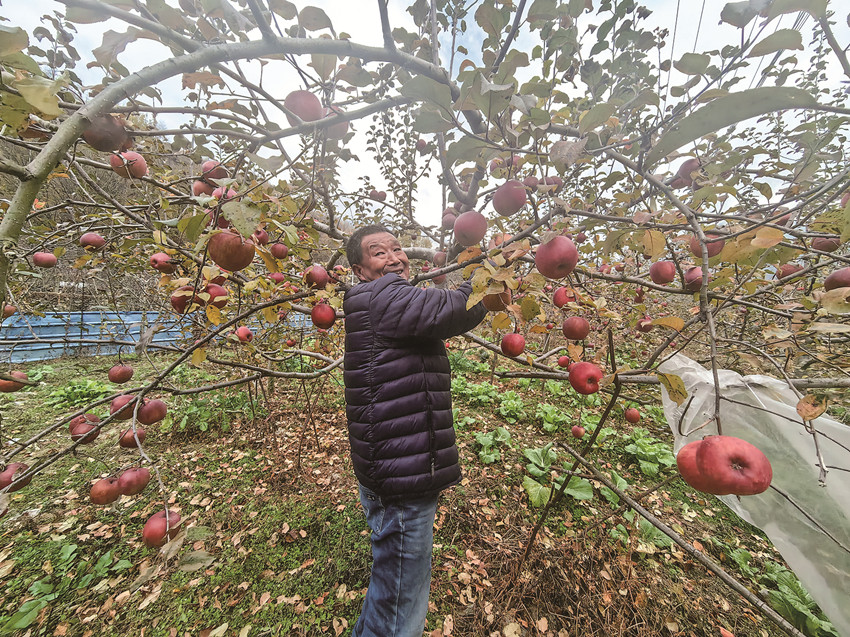 嵐安公路修通以后,王沛林準備發(fā)展農(nóng)家樂。想著良好的生態(tài)才能吸引游客,他就種下4畝高山糖心紅富士蘋果。到今年,蘋果已成為他家的主要收入來源。除了招待游客,年收入有十多萬元。