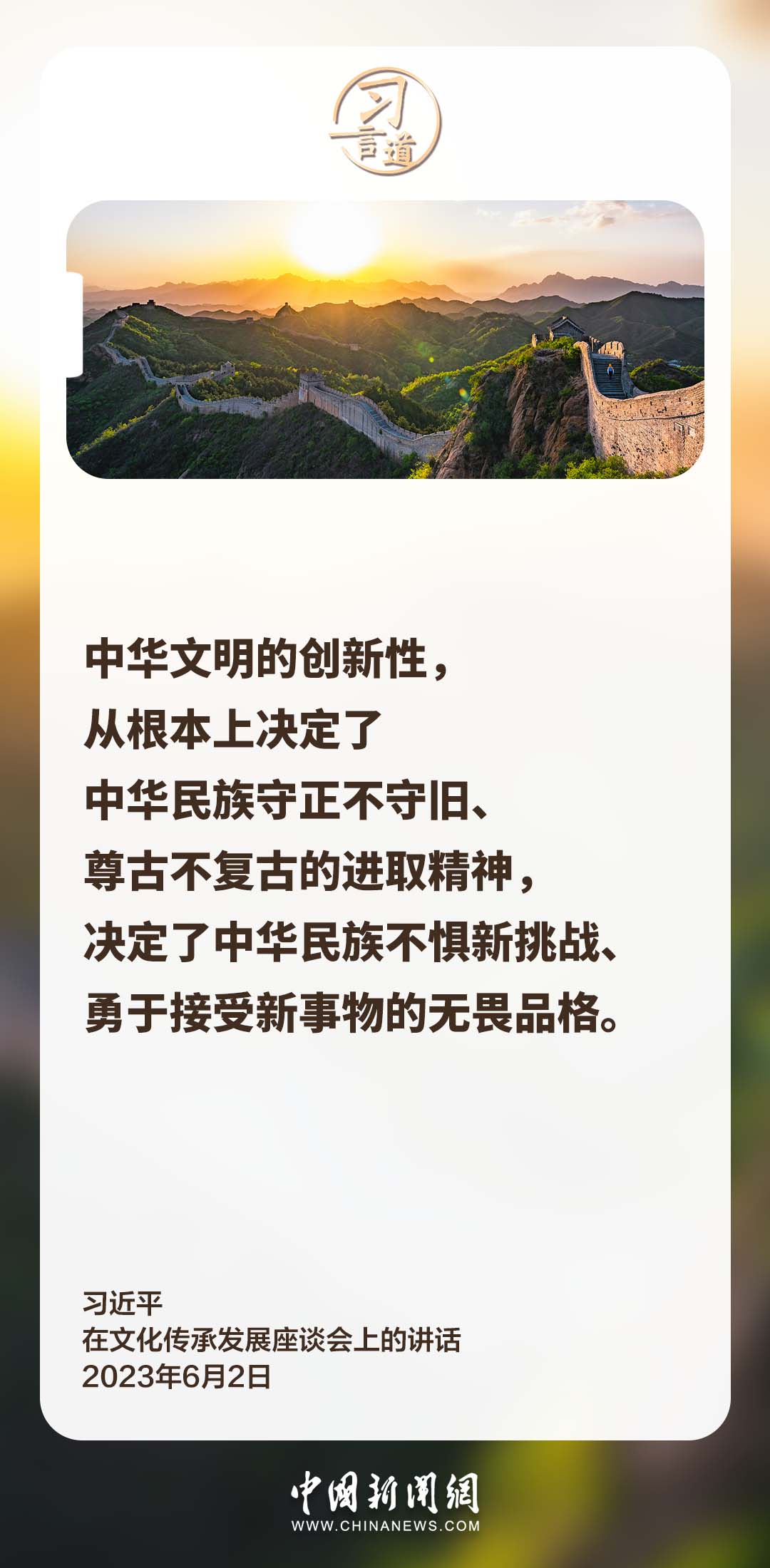 中華文明具有突出的創(chuàng)新性。習(xí)近平總書(shū)記高度重視中華優(yōu)秀傳統(tǒng)文化創(chuàng)造性轉(zhuǎn)化和創(chuàng)新性發(fā)展,強(qiáng)調(diào)創(chuàng)新是一個(gè)民族進(jìn)步的靈魂。