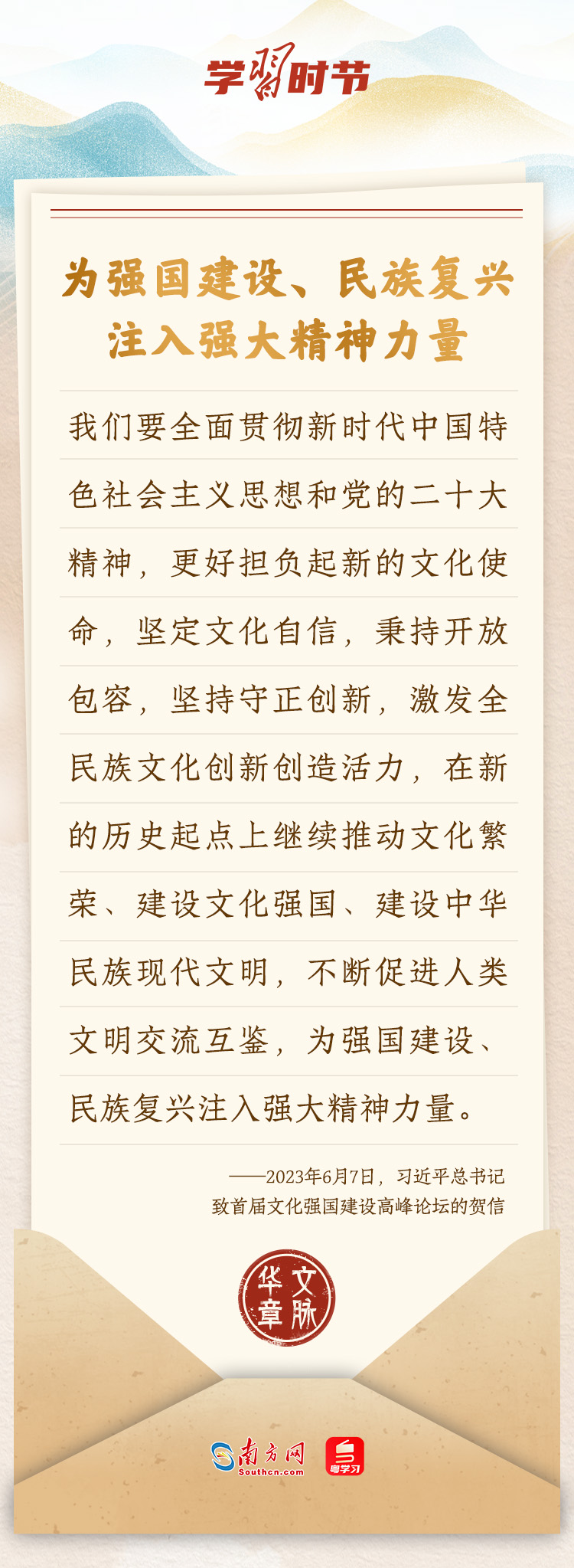 2023年6月2日,習(xí)近平總書記在北京出席文化傳承發(fā)展座談會時(shí)強(qiáng)調(diào),要堅(jiān)定文化自信、擔(dān)當(dāng)使命、奮發(fā)有為,共同努力創(chuàng)造屬于我們這個(gè)時(shí)代的新文化,建設(shè)中華民族現(xiàn)代文明。