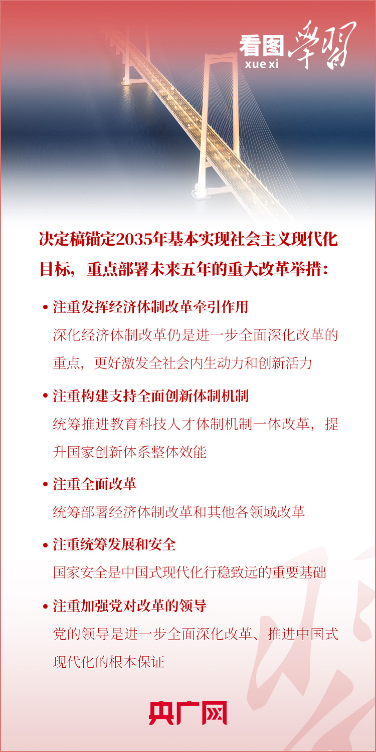 從征求和確定全會(huì)議題到起草文件、深入調(diào)查研究、廣泛征求意見(jiàn)、開展專題論證、反復(fù)討論修改,習(xí)近平總書記指出,決定稿錨定2035年基本實(shí)現(xiàn)社會(huì)主義現(xiàn)代化目標(biāo),重點(diǎn)部署未來(lái)五年的重大改革舉措?!拔鍌€(gè)注重”成為《決定》內(nèi)容擺布鮮明特點(diǎn)。一起來(lái)學(xué)習(xí)!