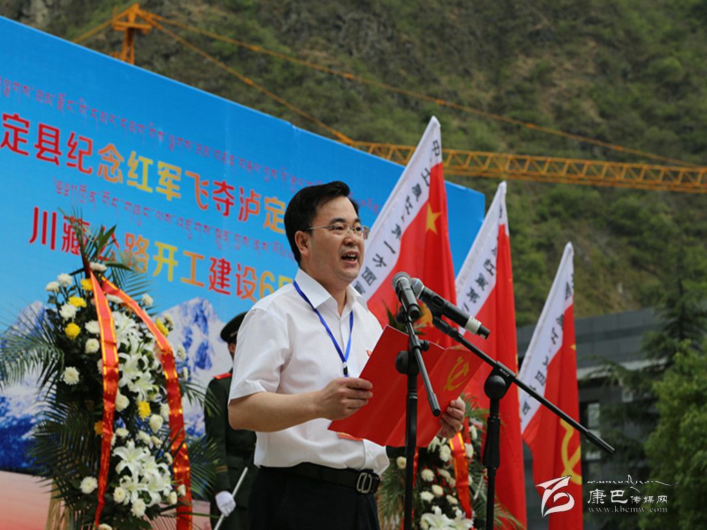 本網(wǎng)訊 (記者 阿連 陳楊 張濤 王明陽 文/圖)巍巍二郎山,英雄瀘定橋。29日上午,瀘定縣在紅軍飛奪瀘定橋紀念碑公園隆重舉行紅軍飛奪瀘定橋勝利80周年暨川藏公路開工建設(shè)65周年活動,深切緬懷先烈、先輩的豐功偉績,傳承長征精神,弘揚“兩路”精神,激勵干群奮進,踐行“三嚴三實”,建設(shè)美好家園。州委書記胡昌升出席活動并宣布紀念紅軍長征在甘孜80周年暨紅色文化旅游宣傳活動開幕。州委副書記、紀委書記汪洋主持紀念活動。