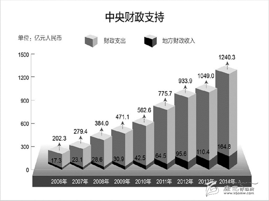 中央政府歷來(lái)高度重視西藏的發(fā)展,十分關(guān)心西藏各族人民的福祉,舉全國(guó)之力支援西藏,以?xún)?yōu)惠的政策和強(qiáng)大的人力、物力、財(cái)力支持,推動(dòng)西藏的發(fā)展進(jìn)步。從1952年到2014年,中央政府對(duì)西藏的各項(xiàng)財(cái)政補(bǔ)助達(dá)6480.8億元,占西藏地方公共財(cái)政支出的92.8%。1980年以來(lái),中央先后六次召開(kāi)西藏工作座談會(huì),從中國(guó)社會(huì)主義現(xiàn)代化建設(shè)全局出發(fā),對(duì)西藏的發(fā)展建設(shè)作出整體規(guī)劃。從1994年第三次西藏工作座談會(huì)開(kāi)始,中央實(shí)施對(duì)口支援西藏的政策,安排60個(gè)中央國(guó)家機(jī)關(guān)、18個(gè)省市和17家中央企業(yè)對(duì)口支援西藏。20年來(lái),先后有七批4496名優(yōu)秀干部、1466名專(zhuān)業(yè)技術(shù)人才進(jìn)藏工作,實(shí)施援藏項(xiàng)目7615個(gè),投入援藏資金260億元,主要用于改善民生和基礎(chǔ)設(shè)施建設(shè),為西藏經(jīng)濟(jì)社會(huì)發(fā)展作出了重要貢獻(xiàn)。