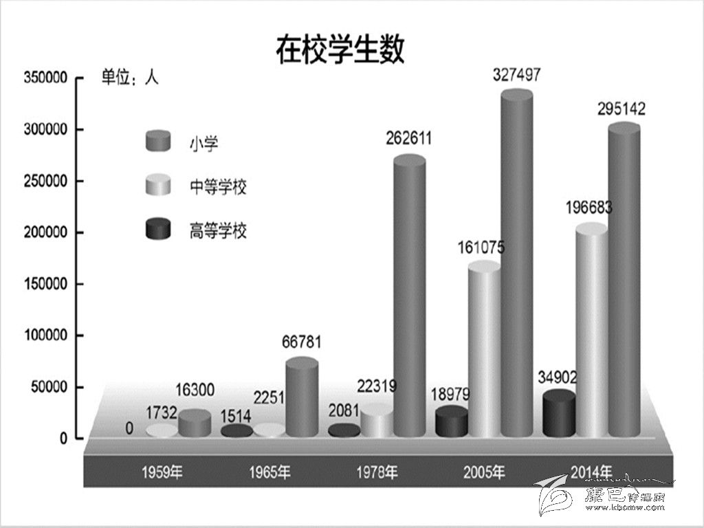 教育事業(yè)日新月異,實(shí)現(xiàn)學(xué)有所教。全區(qū)所有縣(區(qū))全面完成普及九年義務(wù)教育,一個(gè)涵蓋學(xué)前教育、基礎(chǔ)教育、職業(yè)教育、高等教育、成人教育、特殊教育的比較完整的現(xiàn)代教育體系已經(jīng)形成。實(shí)現(xiàn)了從學(xué)前到高中階段15年免費(fèi)教育,農(nóng)牧區(qū)義務(wù)教育學(xué)生營(yíng)養(yǎng)改善計(jì)劃全面落實(shí),政策和資金覆蓋率均達(dá)到100%。“三包”(包吃、包住、包學(xué)習(xí)費(fèi)用)政策覆蓋學(xué)前教育到高中階段所有農(nóng)牧民子女和城鎮(zhèn)困難家庭子女,且不斷提高標(biāo)準(zhǔn),年生均標(biāo)準(zhǔn)已提高到3000元。全面啟動(dòng)實(shí)施城鎮(zhèn)三年、農(nóng)牧區(qū)兩年學(xué)前雙語(yǔ)教育工程。2014年底,幼兒園在園幼兒達(dá)8萬(wàn)多人,學(xué)前教育毛入園率達(dá)60%。2014年底,全區(qū)擁有普通高等院校6所;中等職業(yè)學(xué)校9所,在校生1.7萬(wàn)人;高級(jí)中學(xué)22所,完全中學(xué)4所,初級(jí)中學(xué)93所,十二年和九年一貫制學(xué)校各3所,小學(xué)829所。小學(xué)適齡兒童入學(xué)率達(dá)到99.64%,青壯年文盲率下降至0.57%以?xún)?nèi),人均受教育年限達(dá)到8.6年,新增勞動(dòng)力受教育年限達(dá)到12年以上。1984年,中央政府作出“在內(nèi)地為西藏辦學(xué)培養(yǎng)人才”的重大戰(zhàn)略決策,現(xiàn)有21個(gè)省市辦有西藏班(校),已累計(jì)為西藏培養(yǎng)了大中專(zhuān)畢業(yè)生3.2萬(wàn)余人。目前西藏不僅有了自己培養(yǎng)的碩士、博士,而且有了一批享譽(yù)全國(guó)的專(zhuān)家、學(xué)者,逐步建立了近30個(gè)科研院所,有各類(lèi)專(zhuān)業(yè)技術(shù)人員69709人,學(xué)科領(lǐng)域涉及歷史、經(jīng)濟(jì)、人口、語(yǔ)言、宗教和農(nóng)業(yè)、畜牧、林業(yè)、生態(tài)、生物、藏醫(yī)藥、鹽湖、地?zé)?、太?yáng)能等數(shù)十個(gè)門(mén)類(lèi)。其中,藏學(xué)、高原生態(tài)、藏醫(yī)藥等學(xué)科研究在全國(guó)處于領(lǐng)先水平,產(chǎn)生了一批有世界影響的學(xué)術(shù)成果。