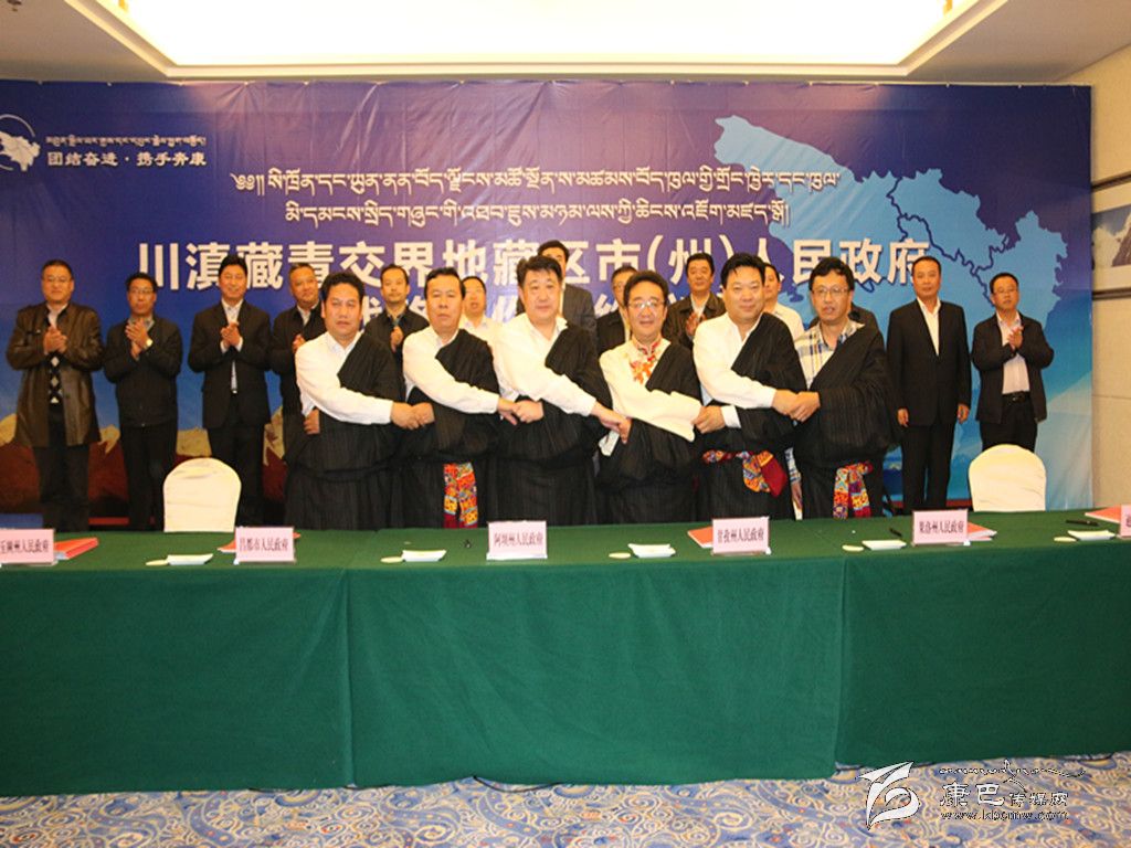 隨著川滇藏青交界地藏區(qū)市(州)長(zhǎng)聯(lián)席會(huì)議制度的建立,交界地藏區(qū)的合作由過(guò)去“點(diǎn)對(duì)點(diǎn)”的雙邊合作上升為“抱成團(tuán)”的多邊合作。圖為簽約儀式現(xiàn)場(chǎng)。