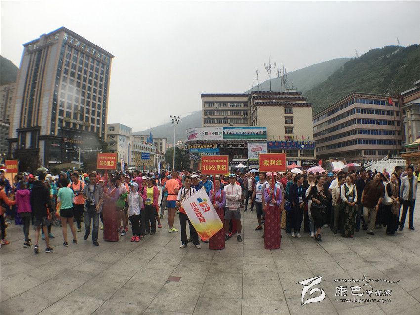 國(guó)家體育總局登山運(yùn)動(dòng)管理中心書(shū)記續(xù)川宣布2016中國(guó)·甘孜環(huán)貢嘎山百公里國(guó)際山地戶(hù)外運(yùn)動(dòng)挑戰(zhàn)賽暨全國(guó)徒步大會(huì)正式開(kāi)賽,比賽在蒙蒙細(xì)雨中拉開(kāi)帷幕。山地戶(hù)外運(yùn)動(dòng)越野賽的200名參賽選手從情歌廣場(chǎng)向跑馬山進(jìn)發(fā),通過(guò)資格賽進(jìn)入決賽的選手將于明日凌晨5時(shí)在康定情歌廣場(chǎng)參加此次挑戰(zhàn)賽正賽。