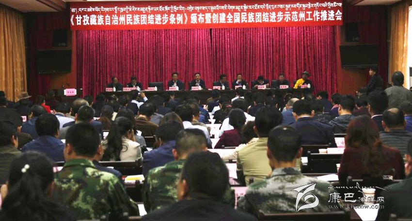 本網(wǎng)訊(記者 楊杰 文/圖)9月2日下午,我州召開《甘孜藏族自治州民族團結(jié)進步條例》頒布暨創(chuàng)建全國民族團結(jié)進步示范州工作推進會,主要任務(wù)是貫徹落實8月1日頒布實施的《甘孜藏族自治州民族團結(jié)進步條例》,表彰命名全州第三批民族團結(jié)進步示范單位,總結(jié)交流示范州創(chuàng)建工作經(jīng)驗,安排部署今后一個時期的民族團結(jié)進步示范州創(chuàng)建工作。