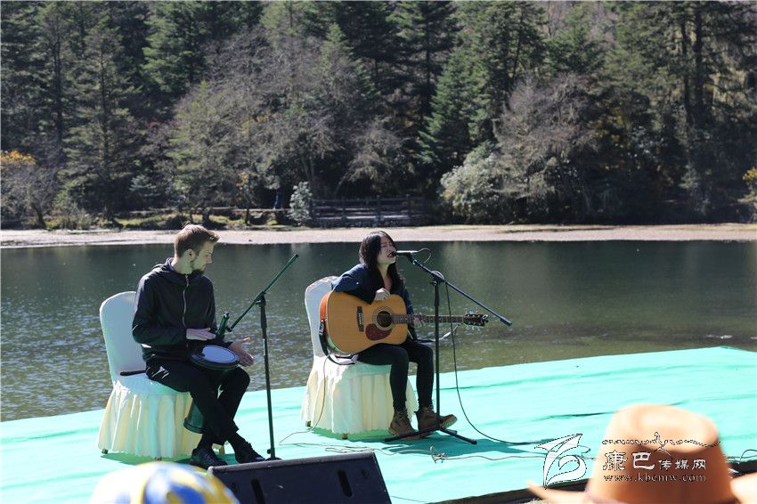 深秋的木格措,漫山遍野披上了金色的外套,七色海也被陽光撒上了一層斑斕的“魚鱗”,泛著星光,很難想象這副如畫的風(fēng)景和不插電音樂將會碰撞出怎樣的火花。