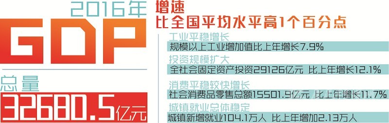 本網(wǎng)訊(記者 陳巖 梁現(xiàn)瑞 李龍俊)1月22日,省政府新聞辦召開新聞發(fā)布會,發(fā)布2016年經(jīng)濟數(shù)據(jù)。經(jīng)國家統(tǒng)計局審定,2016年全省實現(xiàn)地區(qū)生產(chǎn)總值(GDP)32680.5億元,按可比價格計算比上年增長7.7%,增速比全國平均水平高1個百分點。全省經(jīng)濟運行呈現(xiàn)總體穩(wěn)定、穩(wěn)中有進、穩(wěn)中有好的發(fā)展態(tài)勢,實現(xiàn)“十三五”良好開局。