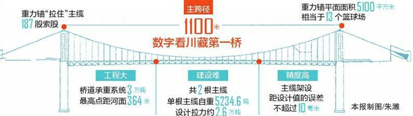 興康特大橋橫跨大渡河,為懸索橋設(shè)計,在整個道橋系統(tǒng)中,全靠主纜拉住橋面、形成支撐。道橋設(shè)計承重系統(tǒng)有3萬多噸,如何拉得???