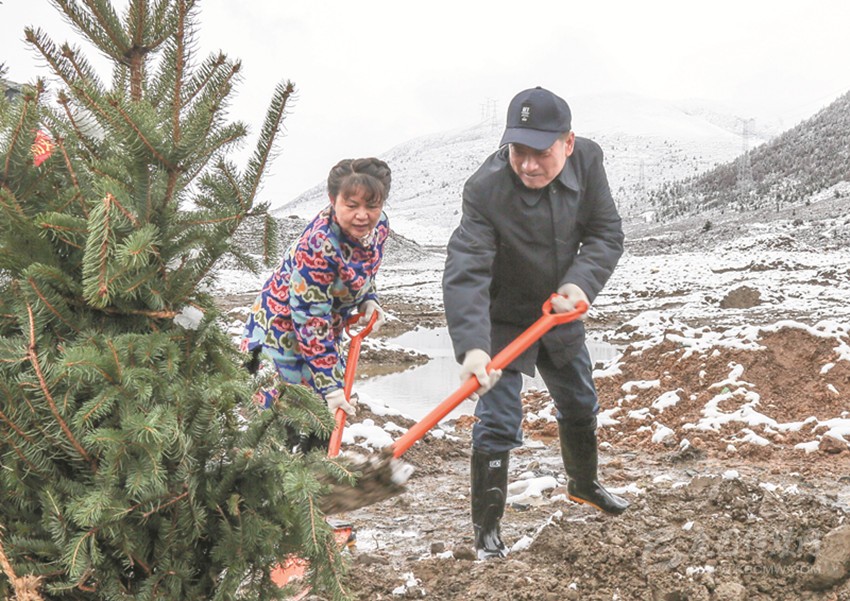 在海拔3800米的呷巴鄉(xiāng)植樹(shù)點(diǎn),劉成鳴、向秋、包建華與其他州領(lǐng)導(dǎo)一道拿起鐵鍬與機(jī)關(guān)干部、部隊(duì)官兵和學(xué)生們一起植樹(shù)。挖坑、扶苗、填土、澆水……大家合力栽下楊柳、高山柳等一棵棵適合當(dāng)?shù)厣L(zhǎng)的樹(shù)苗。植樹(shù)過(guò)程中,劉成鳴還不時(shí)詢(xún)問(wèn)本次義務(wù)植樹(shù)活動(dòng)的栽種面積、樹(shù)木品種及成活率等情況。在與同學(xué)們一起植樹(shù)時(shí),劉成鳴勉勵(lì)同學(xué)們從小樹(shù)立保護(hù)環(huán)境、愛(ài)綠護(hù)綠意識(shí),多做有意義的事,用勤勞的雙手建設(shè)美好家園,要像今天種下的一棵棵樹(shù)苗一樣,健康茁壯成長(zhǎng)。