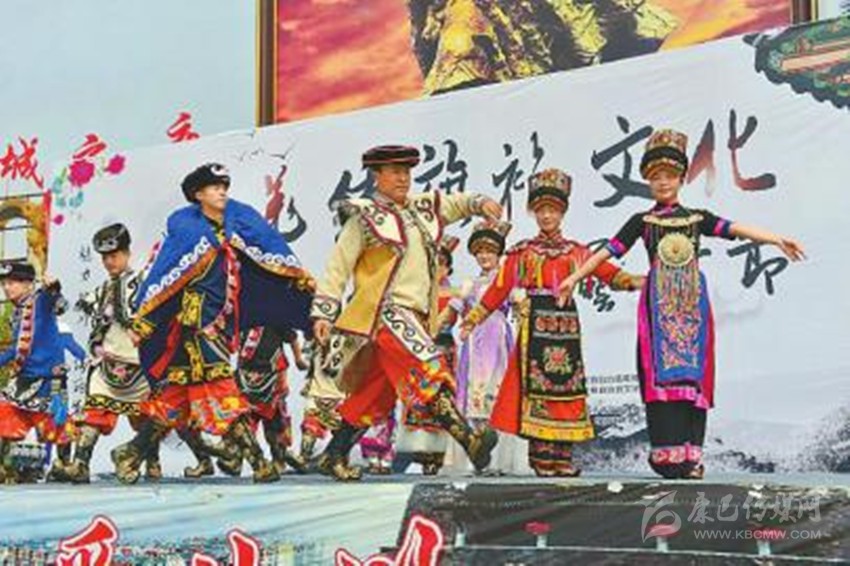 4月29日,綿陽市北川羌族自治縣巴拿恰街文化廣場,當(dāng)?shù)厝罕娚碇褡宸b走秀,歡度“五一”。 寇元林 攝