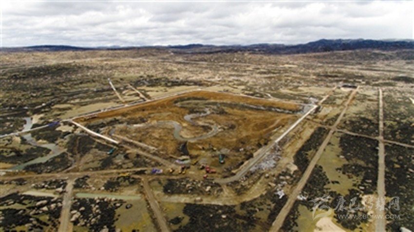 四川甘孜藏族自治州稻城縣海子山,平均海拔4110米。在散落著數(shù)米寬巨石的曠野上,一塊有10個足球場大的圓形區(qū)域已經(jīng)成型,挖土機(jī)忙著挖出3個“品”字形、深4.5米的巨型水池。