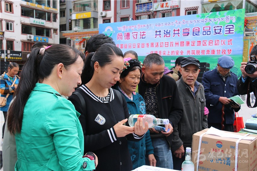 啟動儀式后,在康定情歌廣場上,來自州食安委和康定市食安相關(guān)成員單位通過現(xiàn)場咨詢、板塊展示、張貼海報標(biāo)語、發(fā)放資料等方式,為前來關(guān)注食品安全的市民們發(fā)放和講解相關(guān)問題。在現(xiàn)場,記者看到廣大市民關(guān)注最多的是假冒偽劣食品,對于如何識別,現(xiàn)場工作人員都一一進行了耐心細致地講解。