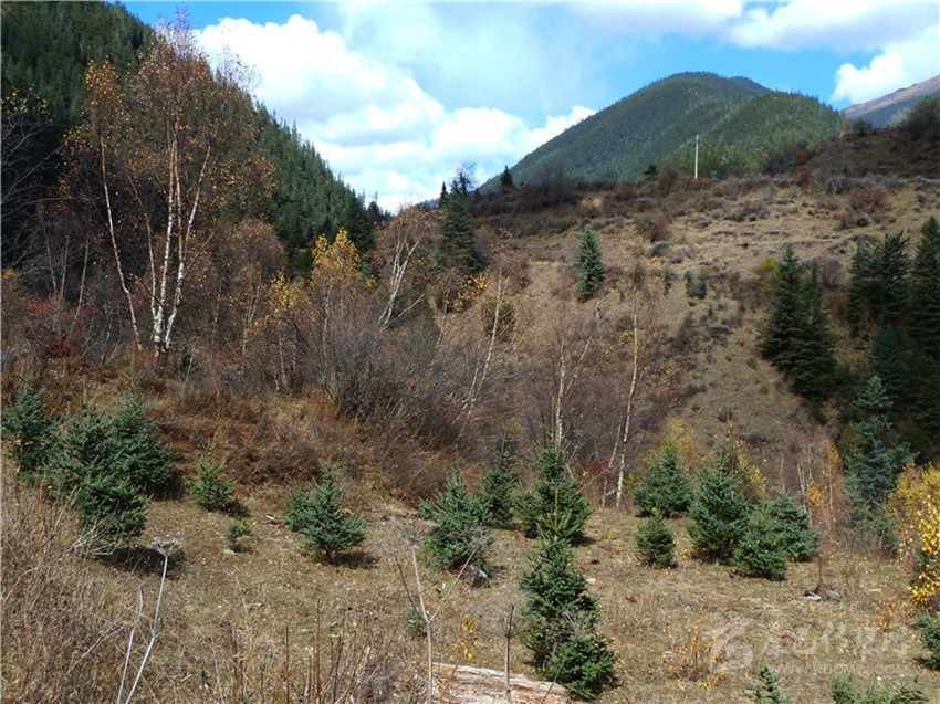 甘孜道孚的一處人工造林點已經(jīng)長出了新的小樹苗。