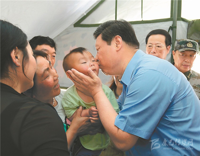 2013年5月21日,習(xí)近平總書記來到蘆山,在震后安置群眾的蘆山縣體育館,他捧著駱俊誠的小臉蛋輕輕親吻的畫面,感動了無數(shù)人。
