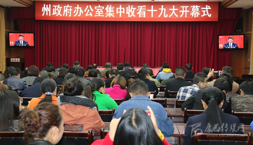中國(guó)共產(chǎn)黨第十九次全國(guó)代表大會(huì)18日上午在人民大會(huì)堂開幕。習(xí)近平代表第十八屆中央委員會(huì)向大會(huì)作了題為《決勝全面建成小康社會(huì) 奪取新時(shí)代中國(guó)特色社會(huì)主義偉大勝利》的報(bào)告。“不忘初心,牢記使命,高舉中國(guó)特色社會(huì)主義偉大旗幟,決勝全面建成小康社會(huì),奪取新時(shí)代中國(guó)特色社會(huì)主義偉大勝利,為實(shí)現(xiàn)中華民族偉大復(fù)興的中國(guó)夢(mèng)不懈奮斗。”上午9時(shí),我州機(jī)關(guān)單位、學(xué)校、農(nóng)村牧區(qū)、企事業(yè)單位、駐軍等干部職工和農(nóng)牧民群眾圍坐在電視機(jī)旁,聚精會(huì)神聆聽十九大報(bào)告,觸摸獲得感,說說心里話。藍(lán)圖催人奮進(jìn),成就鼓舞人心,全州各族人民表示,要在黨的堅(jiān)強(qiáng)領(lǐng)導(dǎo)下,擼起袖子加油干,與全國(guó)人民一道豪邁步入小康社會(huì)。