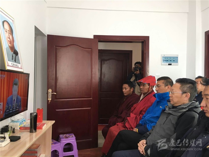 州財(cái)政局干部與聯(lián)系寺廟僧侶一同觀看十九大開幕會(huì)。