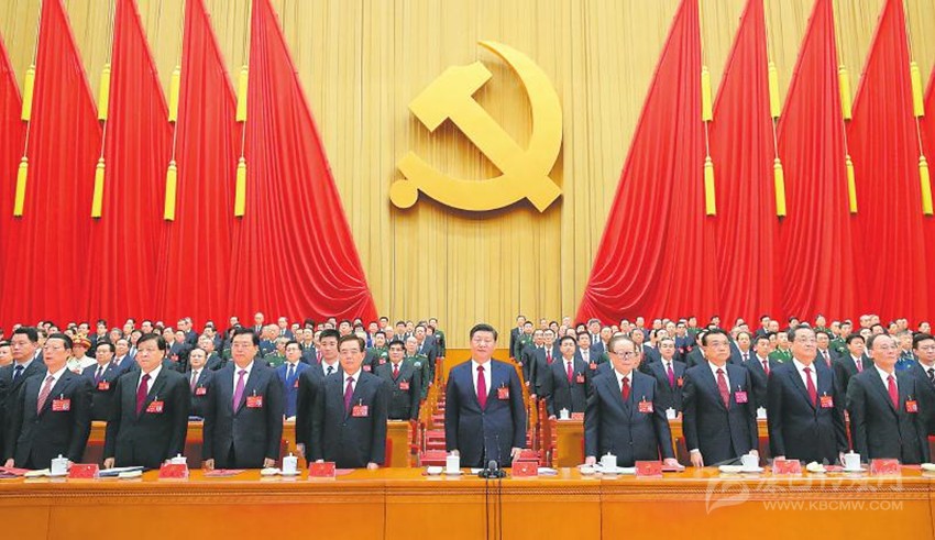 10月24日,中國(guó)共產(chǎn)黨第十九次全國(guó)代表大會(huì)在北京人民大會(huì)堂勝利閉幕。習(xí)近平同志主持大會(huì)。新華社記者 蘭紅光 攝