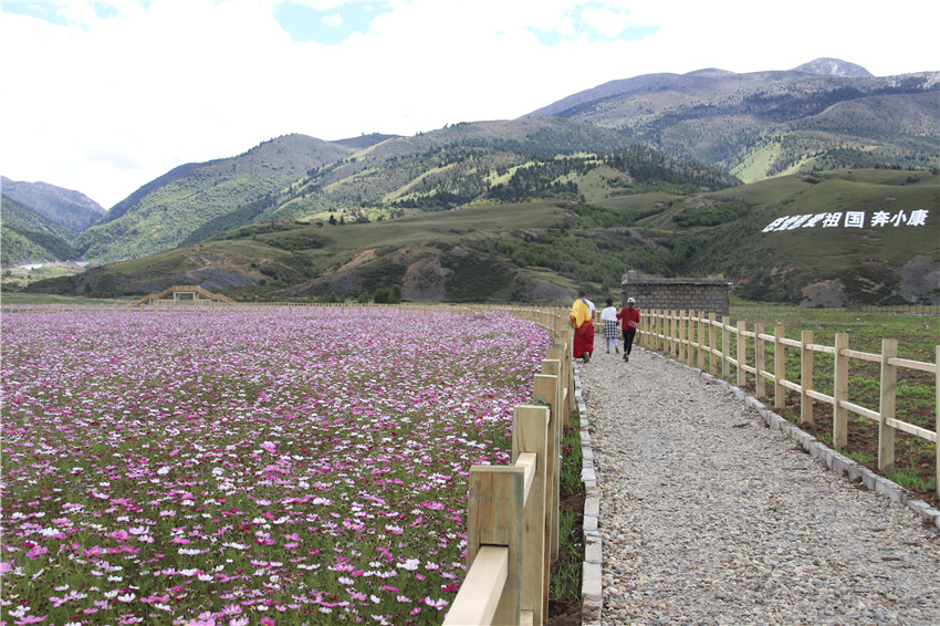 去年,在我州理塘縣濯桑鄉(xiāng)漢戈村, 當(dāng)?shù)貭?zhēng)取各方資金,利用旅游區(qū)位優(yōu)勢(shì)和老百姓群策群力,打造了占地800多畝、以波斯菊為主的漢戈花海,配套修建了賽馬場(chǎng)、游客中心、鍋莊廣場(chǎng)等。從去年國(guó)慶開(kāi)始,漢戈花村開(kāi)門迎客,鮮花留住了游客,也留住了收入。