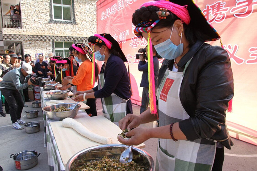啟動儀式上,五家群團(tuán)部門負(fù)責(zé)人分別上臺接收“喜波勒雄”公益助貧行動任務(wù)包。隨即,開展的“喜波勒雄”新時代講堂、包酸菜包子、民俗接待基礎(chǔ)技能比拼、栓頭帕比賽、繡藏繡比賽等“五洗一掃”評選分項活動人氣爆棚,過往游客紛紛駐足,盛贊當(dāng)?shù)孛袼罪L(fēng)情獨具特色。