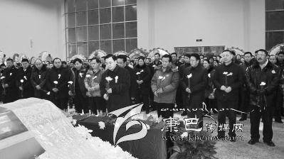 隨后遺體告別儀式開始,前來送別的人們神情肅穆地排成長(zhǎng)隊(duì),緩步走到畢世祥遺體前肅立默哀,鞠躬送別畢世祥同志。一株、兩株、三株……菊花在如雨的眼眸里輝映;一朵、兩朵、三朵……絹花在如水的淚花中閃爍;一步、兩步、三步……步伐在如泣的樂曲中緩行。