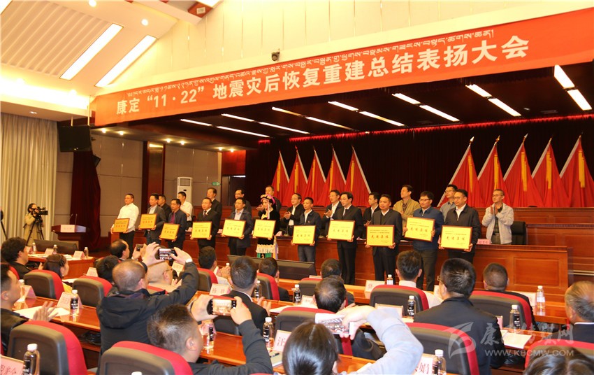 省發(fā)改委副主任徐立作總結講話,省發(fā)改委副主任黃河主持大會并宣讀了四川省政府辦公廳關于表揚康定“11?22”地震災后恢復重建先進集體和先進個人的通報,州委常委、州政府常務副州長趙波就重建工作作了總結匯報。
