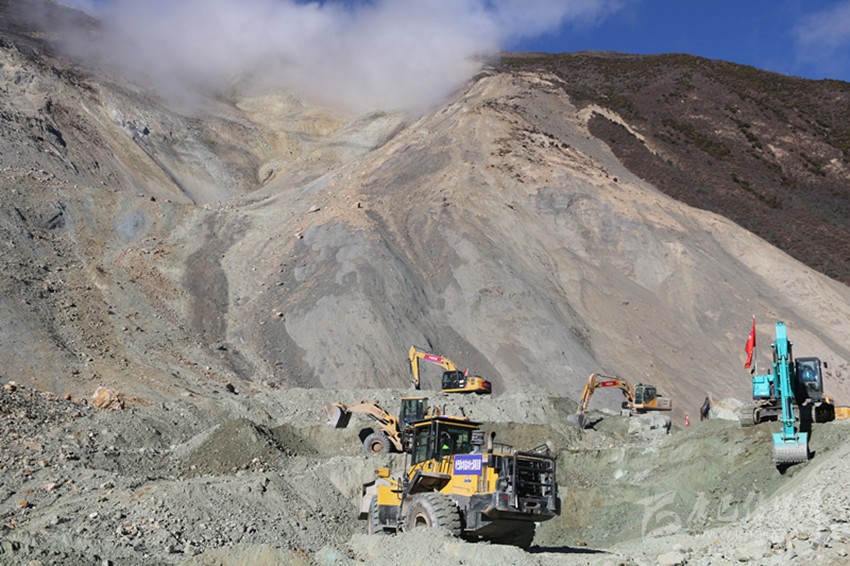 11月7日,又有7臺挖掘機抵達則巴村。當天中午,道路開辟工作開始全面推進。人輪班機器不休息,經(jīng)過半天一夜的不間斷施工,終于在8日8時過將通往江邊的7.5公里通道打通。挖掘機繼續(xù)沿著相對平坦的河床向上,開辟通往堰塞體壩頂?shù)牡缆贰?日下午2時28分,來自水電五局的挖機手趙明喜將第一臺挖掘機成功開上壩頂,比預計時間提前18個小時?!斑@個時間點我記得很清楚,這提前的18個小時給后續(xù)搶險救援騰出了寶貴的時間?!笔惫芾韽d副廳長毛德忠說。