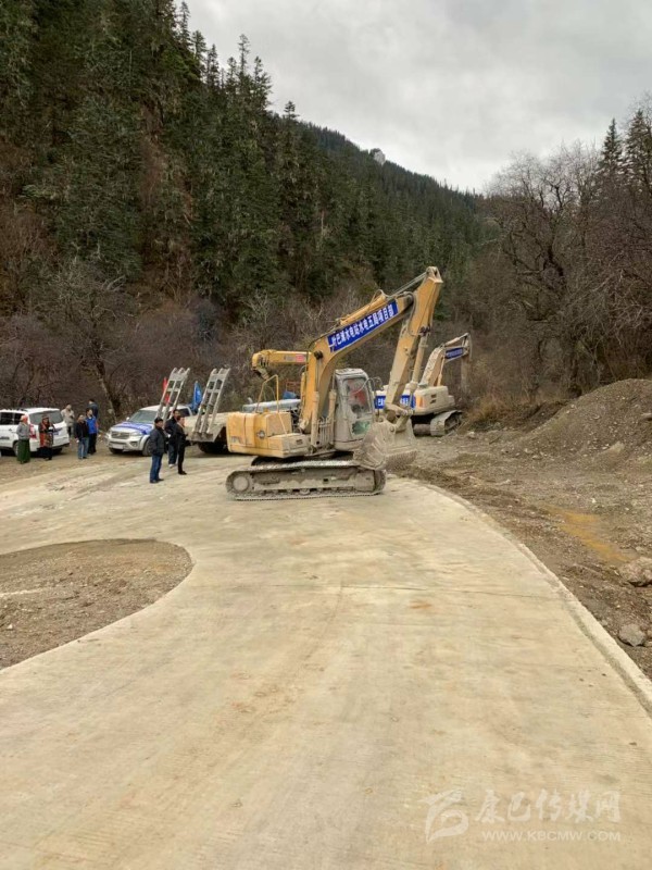 11月6日凌晨5點(diǎn)40分,經(jīng)過(guò)13個(gè)小時(shí)的艱難行駛,2臺(tái)挖掘機(jī)成功抵達(dá)則巴村,立即開始打通到江邊7.5公里生命通道的施工作業(yè)。